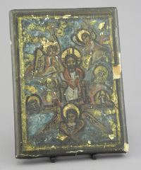 LOT 92 Coptic Icon Acquired Cairo 1977, 7 3/4 x 6" (as found/losses noted). Estimate: $150 - $300 Sold For: $450 Auction Date: Tuesday, June 17 2025 at 4:00 PM