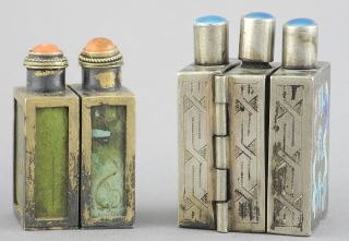 LOT 132 Two Chinese Silver Alloy Hinged Snuff Bottles, 1 1/2 & 1 3/4"h, 76g. Estimate: $200 - $400 Sold For: $350 Auction Date: Tuesday, June 17 2025 at 4:00 PM