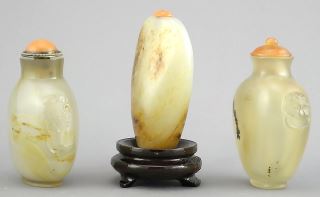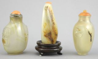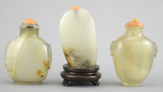 LOT 65 Three Chinese Agate Snuff Bottles, 2 5/8 - 2 7/8"h, Estimate: $200 - $400 Sold For: $475 Auction Date: Tuesday, June 17 2025 at 4:00 PM