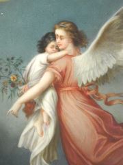 Porcelain Plaque, 7 1/2 x 5 1/4", "The Guardian Angel", Verso Impressed 04/A.