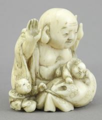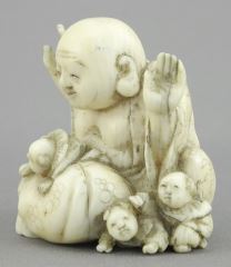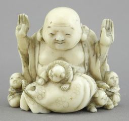 LOT 147 Japanese Netsuke, signed, "Hotei & Children", 1 3/8"h, 26.7g, NO EXPORT Estimate: $150 - $250 Sold For: $325 Auction Date: Tuesday, June 17 2025 at 4:00 PM