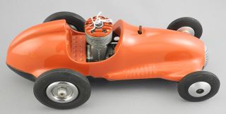 LOT 116 Real McCoy Midgit Racer Tether Car, 9 1/2". Estimate: $150 - $250 Sold For: $400 Auction Date: Tuesday, June 17 2025 at 4:00 PM