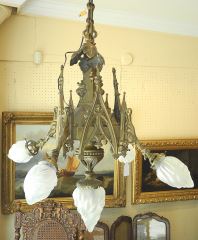 LOT 2 Gothic Bronze Light Fixture, Marked NB HL3390, Fixture with Shade 30". Estimate: $500 - $1,000 Auction Date: Tuesday, June 17 2025 at 4:00 PM