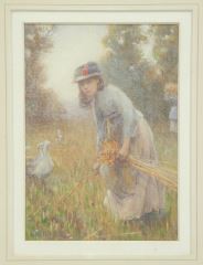 LOT 8 Watercolour signed Max Ludby 1901, 6 3/4 x 4 7/8", "Gleaners", Labeled Verso. Estimate: $150 - $200 Auction Date: Tuesday, June 17 2025 at 4:00 PM