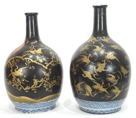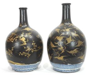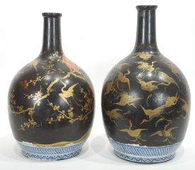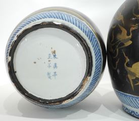 LOT 102 Pair of Japanese Blue & White Porcelain Lacquered Vases, 16 1/2 & 15 1/2"h (1 rim restored). Estimate: $200 - $400 Sold For: $250 Auction Date: Tuesday, June 17 2025 at 4:00 PM