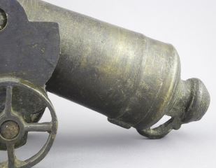LOT 86 Southeast Asian Bronze Cannon, Possibly Brunei (14"L) with Later Carriage. Estimate: $750 - $1,000 Auction Date: Tuesday, June 17 2025 at 4:00 PM
