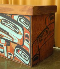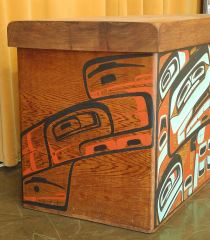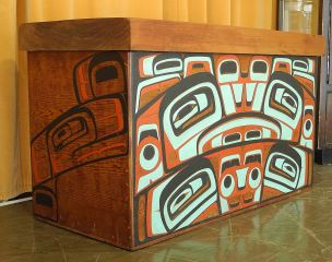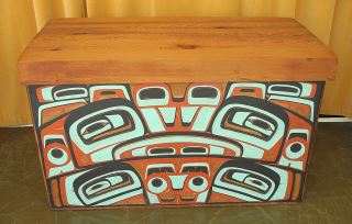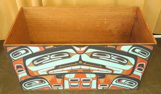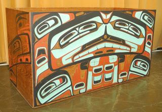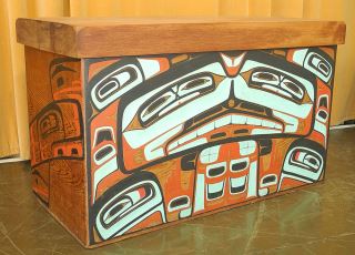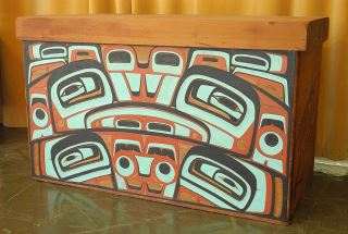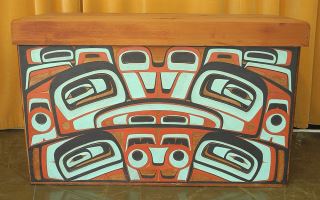 LOT 111 Bentwood Box by Reg Davidson, 26 1/2 x 44 1/4 x 22", "One And The Sea", C.1980 w/ COA from Artist. Estimate: $10,000 - $15,000 Sold For: $10,000 Auction Date: Tuesday, June 17 2025 at 4:00 PM