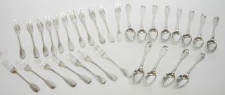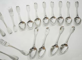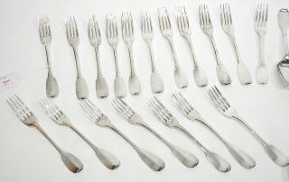 LOT 154 30 Pieces Continental Silver Flatware, 2032g, 18 Forks & 12 Spoons. Estimate: $2,000 - $3,000 Sold For: $1,900 Auction Date: Tuesday, June 17 2025 at 4:00 PM