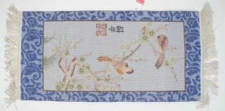 LOT 85 Chinese Blue Silk "Prunus Bough" Mat Approximately 42 x 18". Estimate: $150 - $300 Sold For: $425 Auction Date: Tuesday, August 19 2025 at 4:00 PM