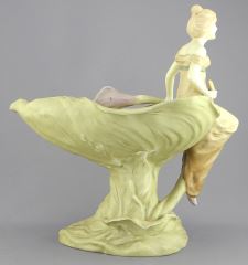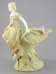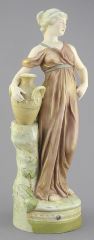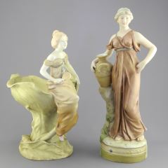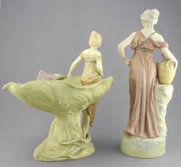 LOT 150 Two Royal Dux Ceramic Figurines: Water Carrier (restored) & Lady Upon Leaf, 11 3/4"h. Estimate: $200 - $300 Auction Date: Tuesday, August 19 2025 at 4:00 PM