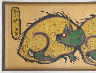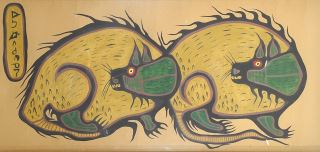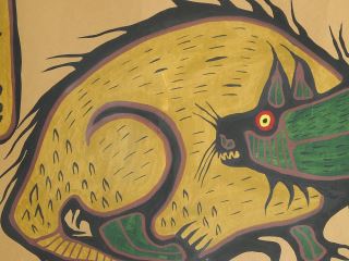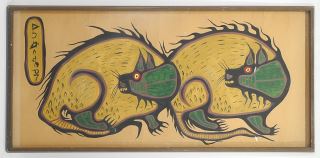 LOT 42 Acrylic on Paper signed with Syllabics Norval Morriseau, 24 x 52 ", "Two Muskrats". Estimate: $7,000 - $9,000 Auction Date: Tuesday, August 19 2025 at 4:00 PM