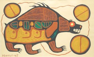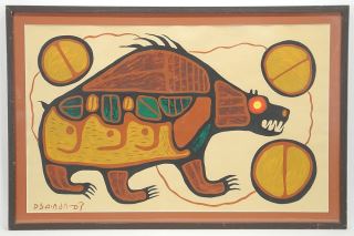 LOT 41 Acrylic on Paper signed with Syllabics Norval Morriseau, 19 x 31 ", "Sacred Bear". Estimate: $6,000 - $8,000 Auction Date: Tuesday, August 19 2025 at 4:00 PM