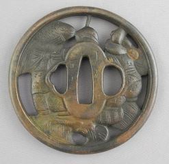 LOT 128 Old Japanese Tsuba, 3 1/4" Diameter, 158.2g. Estimate: $200 - $300 Sold For: $425 Auction Date: Tuesday, August 19 2025 at 4:00 PM