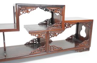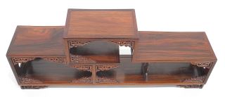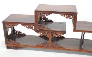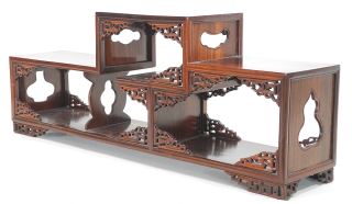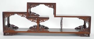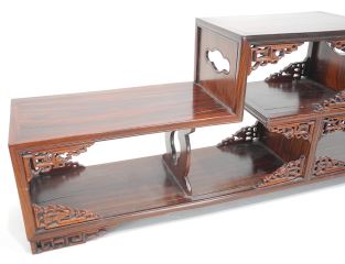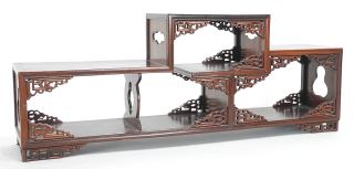 LOT 110 Chinese Hardwood Offset Stand, 8 1/4 x 21 3/4 x 4 5/8". Estimate: $200 - $300 Sold For: $375 Auction Date: Tuesday, August 19 2025 at 4:00 PM