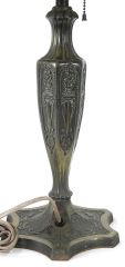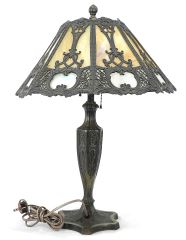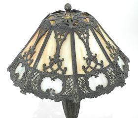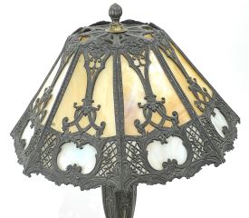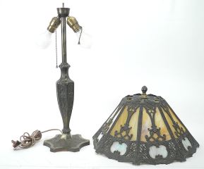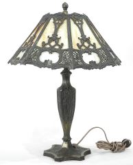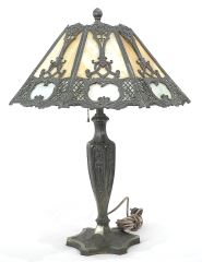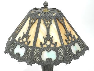 LOT 120 C.1920's American Cast Base Table Lamp with Slag Glass Shade, 24"h, Possibly Salem Bros. Estimate: $400 - $600 Sold For: $400 Auction Date: Tuesday, August 19 2025 at 4:00 PM