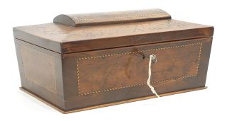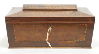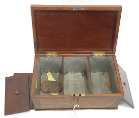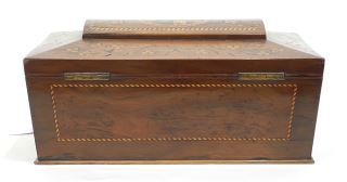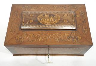 LOT 168 Early 19th C. Inlaid Mahogany "Killarney Lakes" Tea Caddy, 13"w. Estimate: $150 - $300 Sold For: $325 Auction Date: Tuesday, August 19 2025 at 4:00 PM