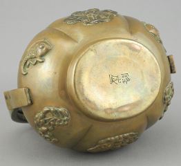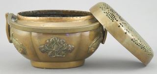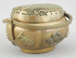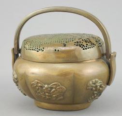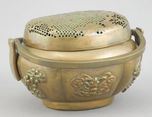 LOT 164 Chinese Copper Incense Burner/Hand Warmer, 4 1/2 x 3 3/4 x 3". Estimate: $200 - $300 Auction Date: Tuesday, August 19 2025 at 4:00 PM