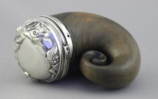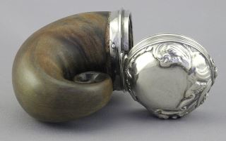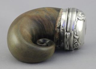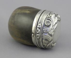 LOT 154 Scottish Horn Snuff Mull, 2 1/2"h (interior rim chipped). Estimate: $200 - $300 Sold For: $225 Auction Date: Tuesday, August 19 2025 at 4:00 PM