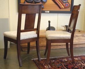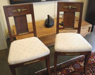 LOT 22 Pair of French Empire Mahogany Salon Chairs, 34 1/4"h. Estimate: $150 - $300 Sold For: $150 Auction Date: Tuesday, August 19 2025 at 4:00 PM