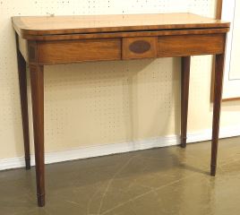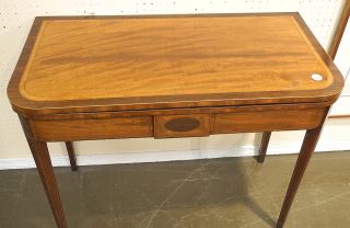 Banded Mahogany Fold Over Games Table, 29 1/2 x 36 1/4 x 18".