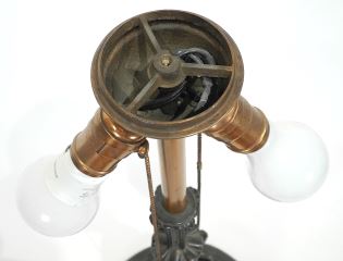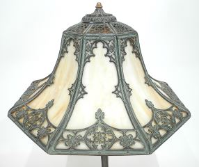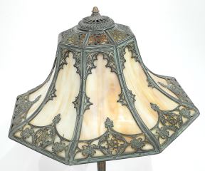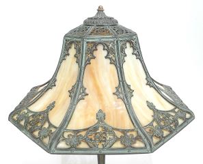 LOT 15 Romanesque-Style American Cast Metal & Caramel Glass Table Lamp, 25 3/4" h. Estimate: $600 - $800 Sold For: $700 Auction Date: Tuesday, August 19 2025 at 4:00 PM