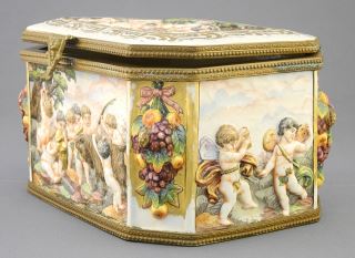 LOT 165 Capo di Monte Porcelain Casket, 4 5/8 x 7 7/8 x 6" (restored). Estimate: $100 - $150 Sold For: $120 Auction Date: Tuesday, August 19 2025 at 4:00 PM