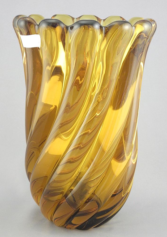 Archimede Seguso Murano Amber Glass Vase, 8 7/8"h.