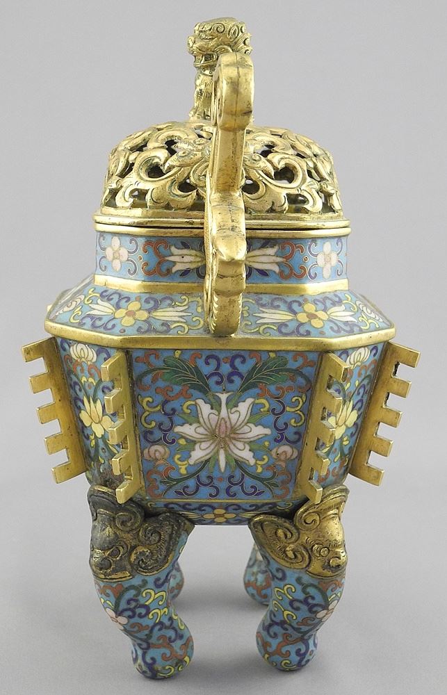 Chinese Gilt Metal & Cloisonne Censer, 8 x 7 1/4 x 4 1/2".