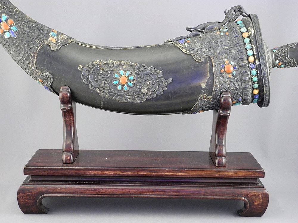 Tibetan Yak Horn Dagger on Stand, 22 3/4"L.