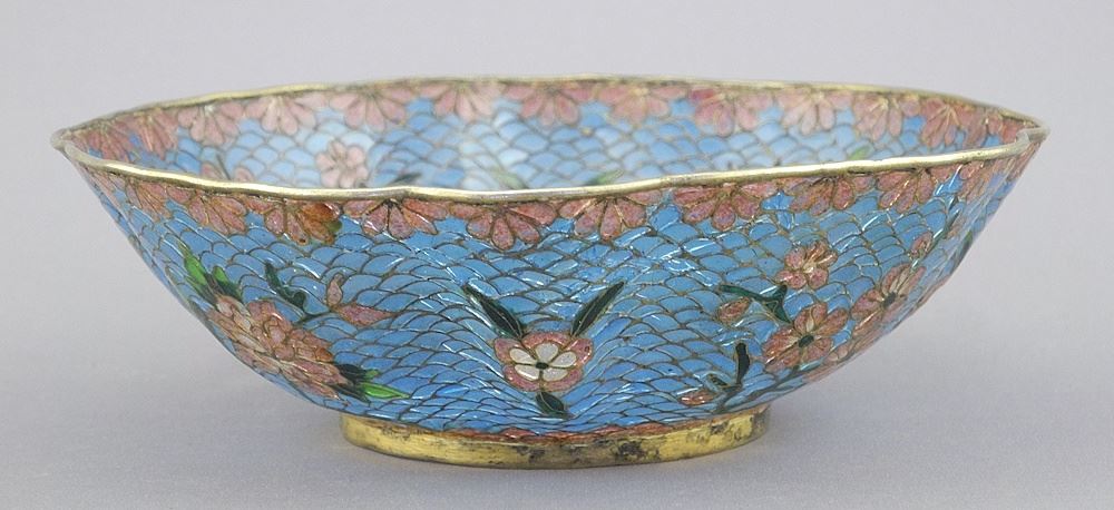 Qing Plique a Jour Enamel Bowl with Export Seal, 1 7/8 x 6" Diameter, Includes Box.