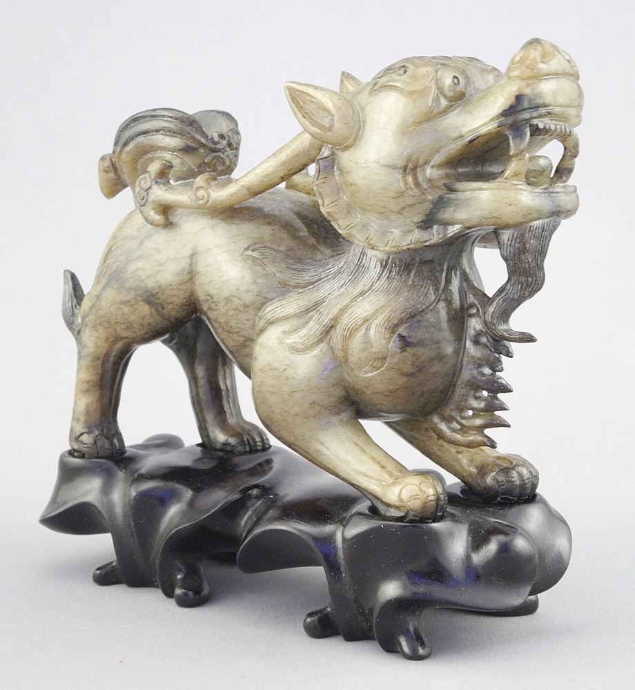 Chinese Carved Nephrite Chimaeric Beast with Stand & Box, 5 3/8"L.