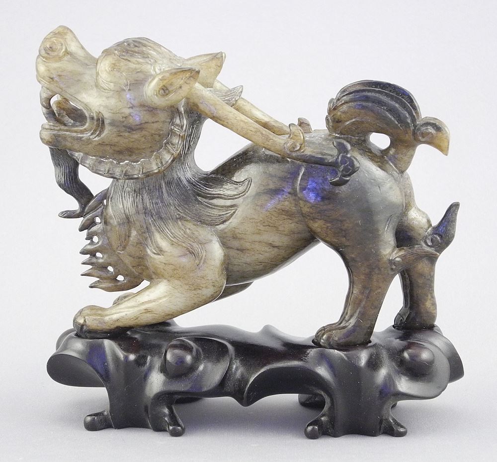 LOT 168 Chinese Carved Nephrite Chimaeric Beast with Stand & Box, 5 3/8"L. Estimate: $100 - $200 Sold For: $425 Auction Date: Tuesday, October 21 2025 at 4:00 PM