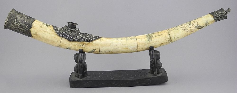 LOT 37 19th C. Carved Bone Opium Pipe with Stand, 17"L. Estimate: $400 - $500 Auction Date: Tuesday, October 21 2025 at 4:00 PM
