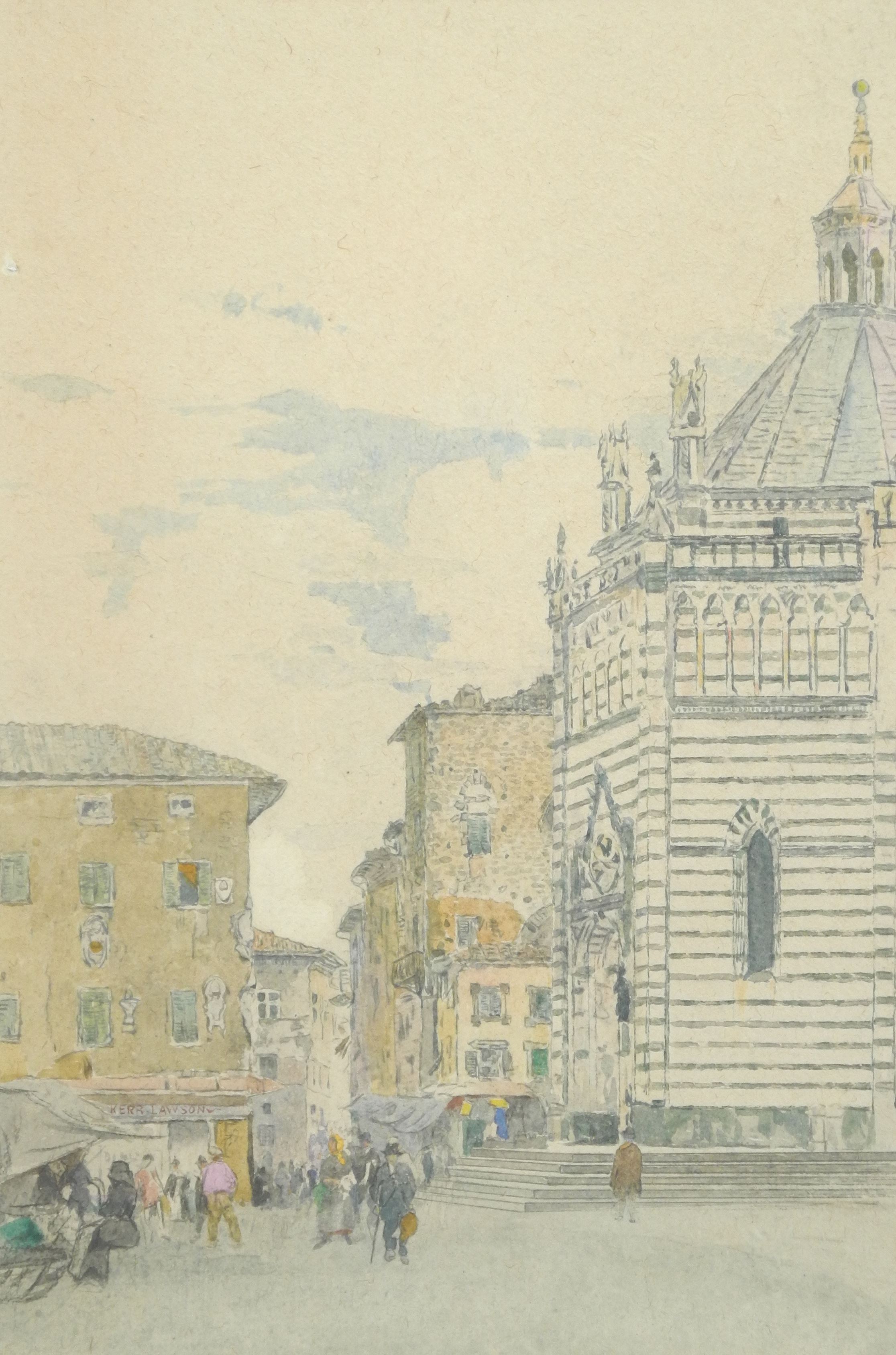 Watercolour signed (James) Kerr- Lawson, 19 1/8 x 12 7/8", "Town Scene with Figures".