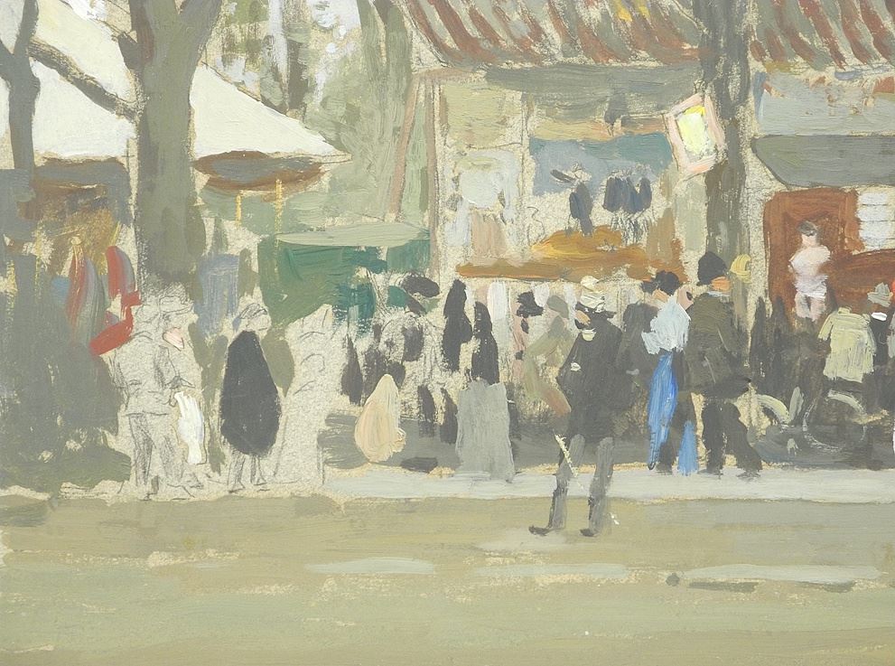 LOT 81 Drawing w/Gouache Monogrammed JKL (James Kerr-Lawson), 10 7/8 x 15 3/8 ", "Figures Gathering". Estimate: $200 - $400 Sold For: $200 Auction Date: Tuesday, October 21 2025 at 4:00 PM
