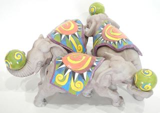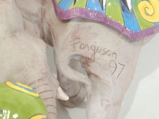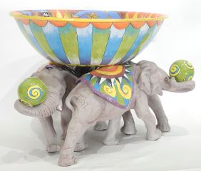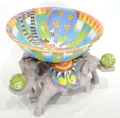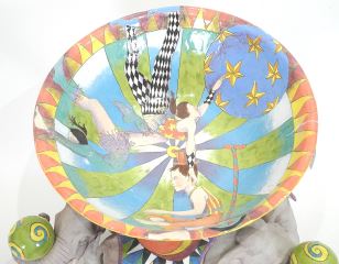 LOT 114 Ceramic Bowl on Stand signed (DaNisha) Ferguson, 12 1/2"h, "Circus Bowl". Estimate: $400 - $600 Sold For: $425 Auction Date: Tuesday, October 21 2025 at 4:00 PM