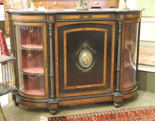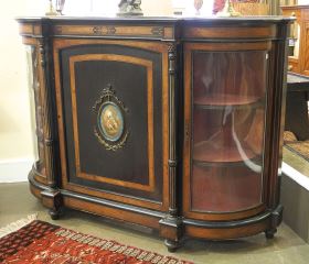 Mid 19th C. Walnut Banded Ebonized Credenza, 42 3/4 x 62 x 17 7/8".