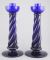 Pair of Archimede Seguso Cobalt Glass Candlesticks
