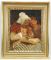 Oval Porcelain Portrait Plaque in Quilted Silk Convex Glass Frame