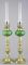 Pair Antique Peg or Candlestick Lamps with Green Glass Fonts & Clear Glass Fonts & Chimneys.