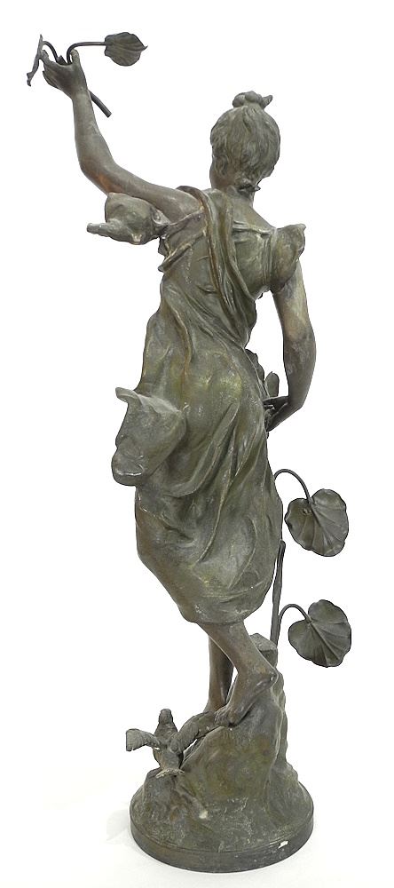 LOT 216 Spelter Sculpture After Bruchon, 23 1/4", "Primevere". Estimate: $200 - $400 Sold For: $200 Auction Date: Tuesday, October 21 2025 at 4:00 PM