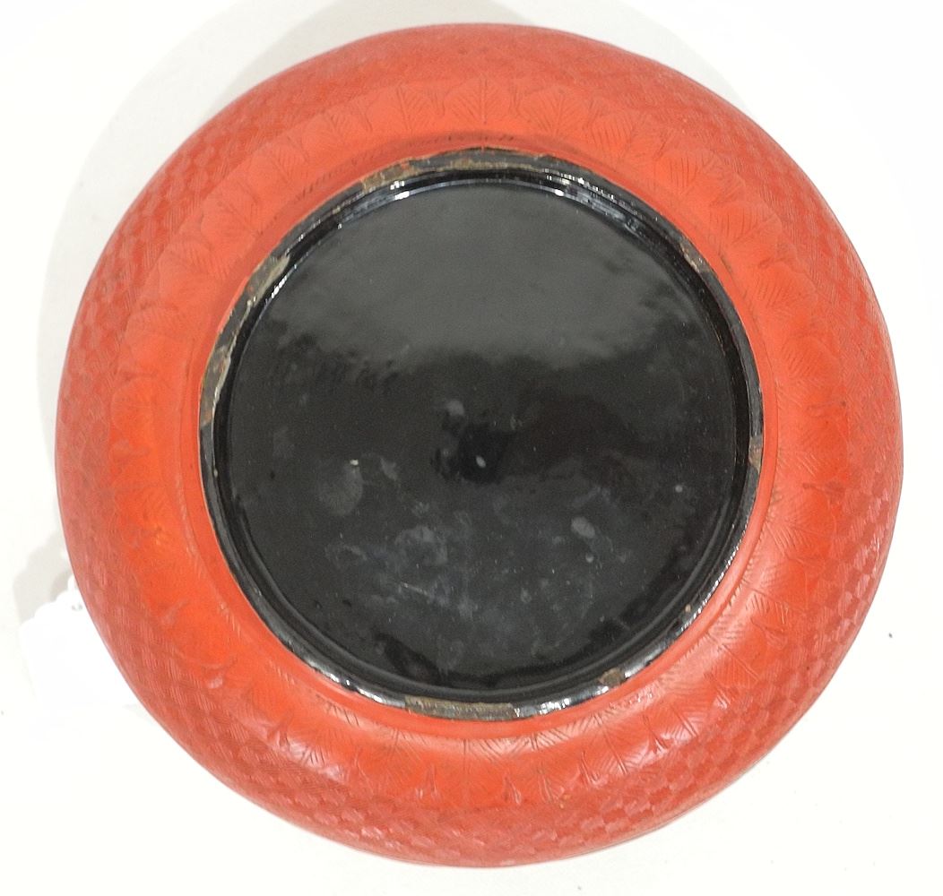 Cinnabar Circular Covered Bowl, 7 1/2" Diameter.