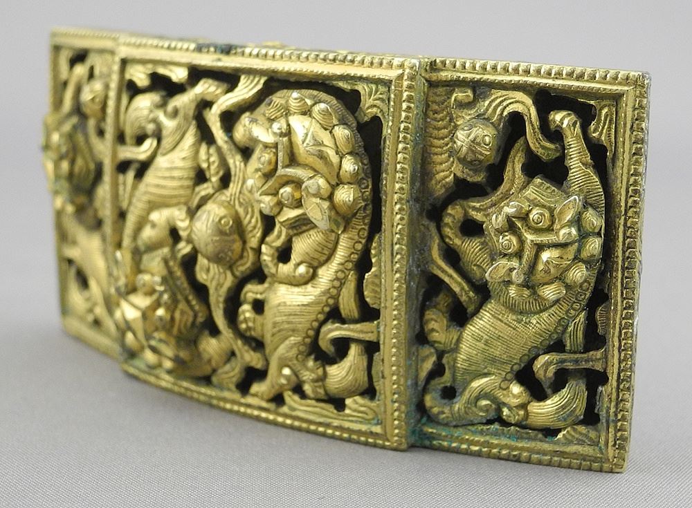 Qing Gilt Bronze Belt Buckle, 1 1/2 x 2 3/4 x 1/2", 85.3g (as found).