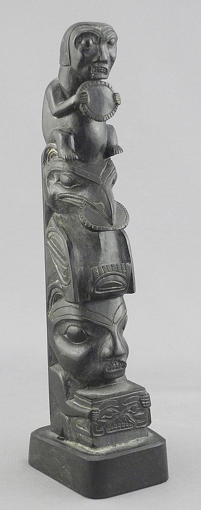 Haida Argillite Model Totem Pole, Unsigned, 8 3/8"h.