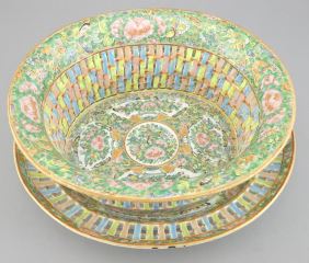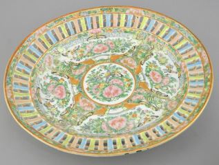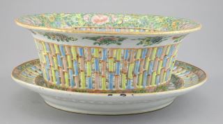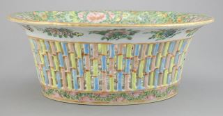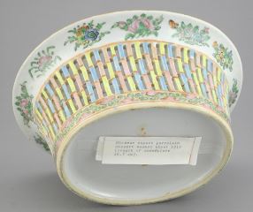 LOT 75 Late 19th C. Chinese Rose Canton Basket on Stand, 4 1/8 x 10 1/4 x 9 1/8". Estimate: $200 - $400 Sold For: $250 Auction Date: Tuesday, October 21 2025 at 4:00 PM