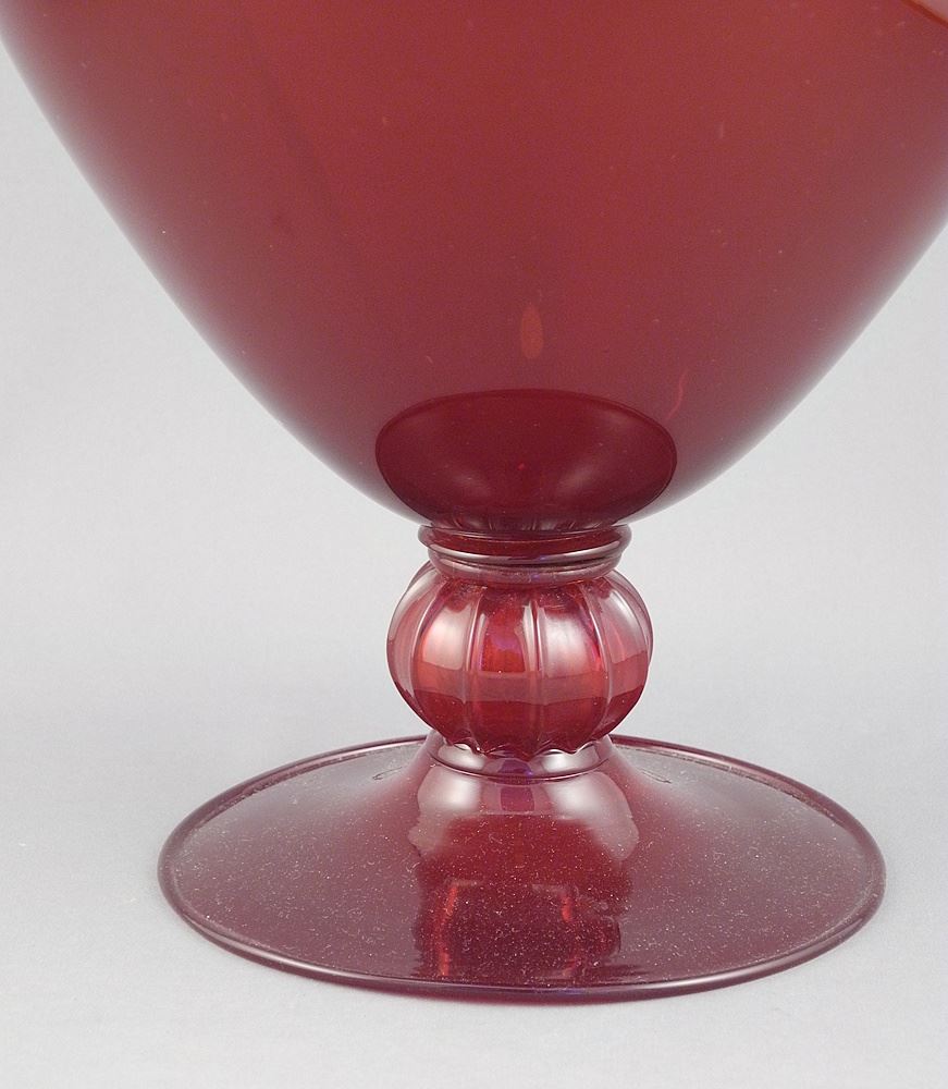 Archimede Seguso Murano Ruby Glass Pedestal Vase, 12 1/4"h.