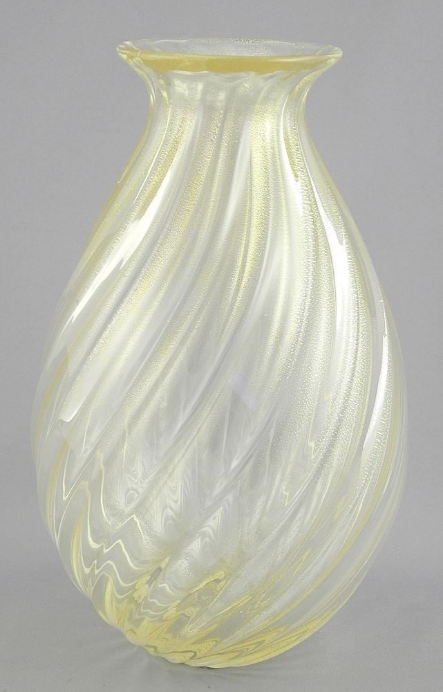 Archimede Seguso Murano Aventurine Glass Vase, 7 3/4"h.