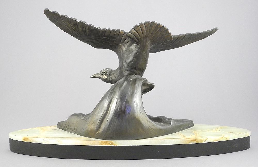 Spelter & Onyx Sculpture signed A. de Leury, 17 3/8", "Swooping Gull".
