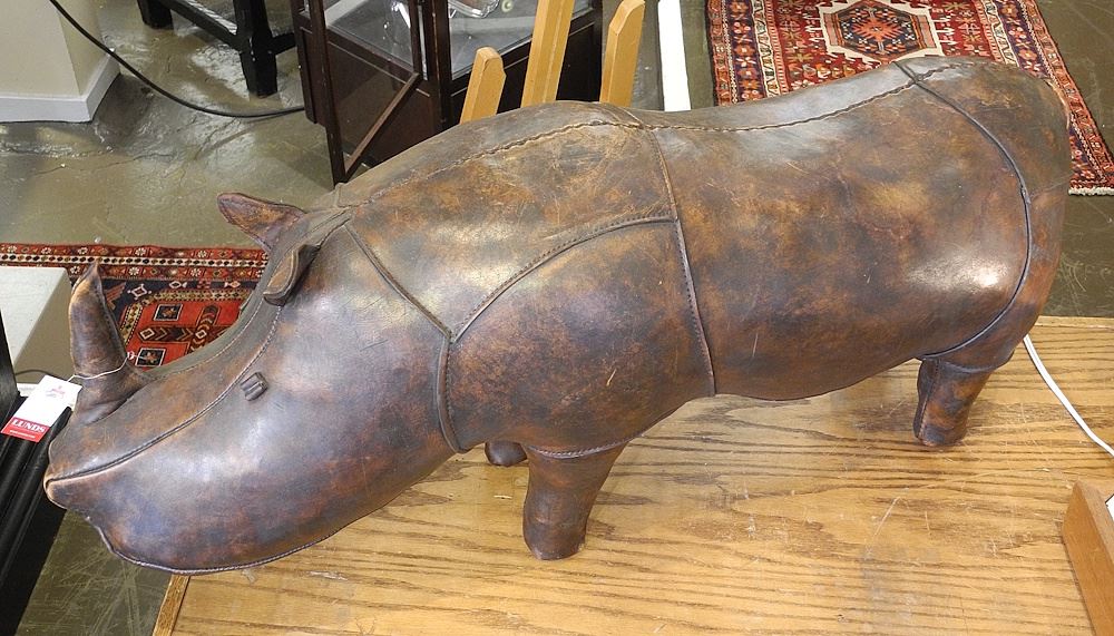 LOT 1 C.1960 Dimitri Omersa Leather Rhinoceros, 44"L. Estimate: $1,000 - $1,500 Sold For: $2,000 Auction Date: Tuesday, October 21 2025 at 4:00 PM
