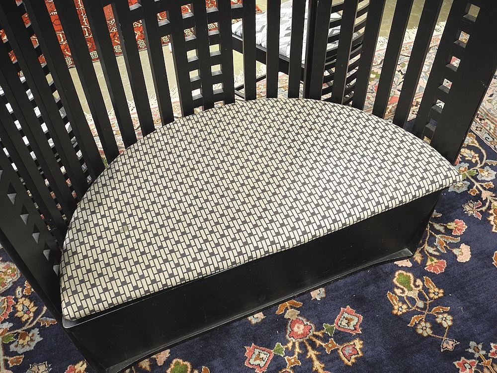 LOT 209 Pair of Charles Rennie Mackintosh Style Willow Chairs, 47 1/2"h. Estimate: $400 - $600 Sold For: $750 Auction Date: Tuesday, October 21 2025 at 4:00 PM